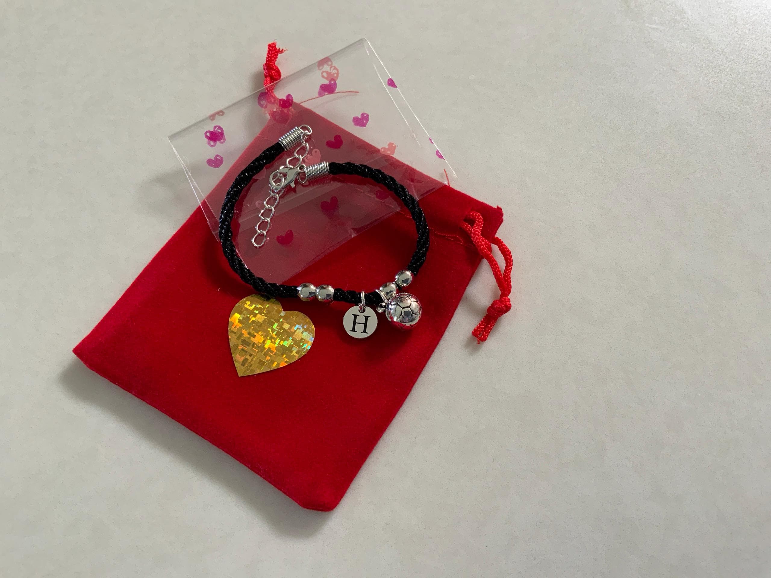 This bracelet exceeded my expectations and my granddaughter will love it! Well made and with a solid good quality soccer ball charm. The initial charm is stamped on both sides which was unexpected. Delivery was only two weeks from UK to Australia. Excellent seller, very responsive to my enquiry, thank you Anna!