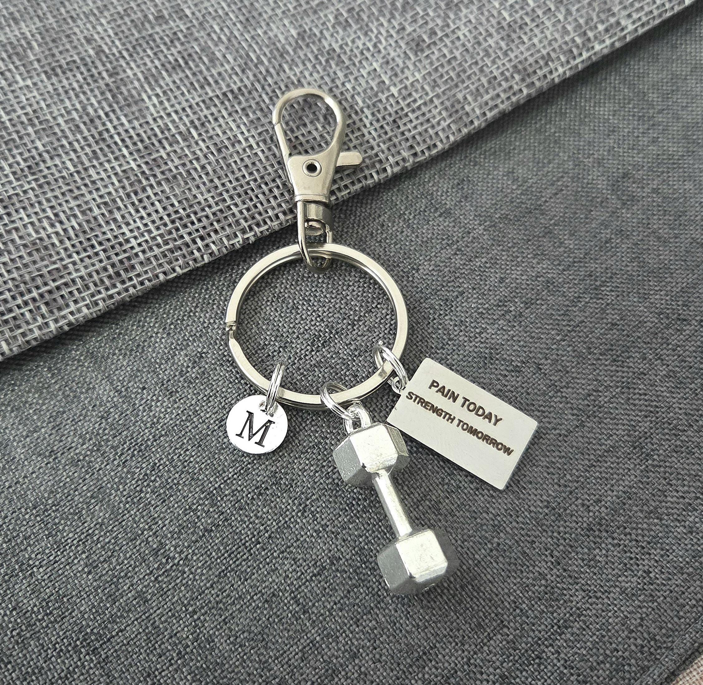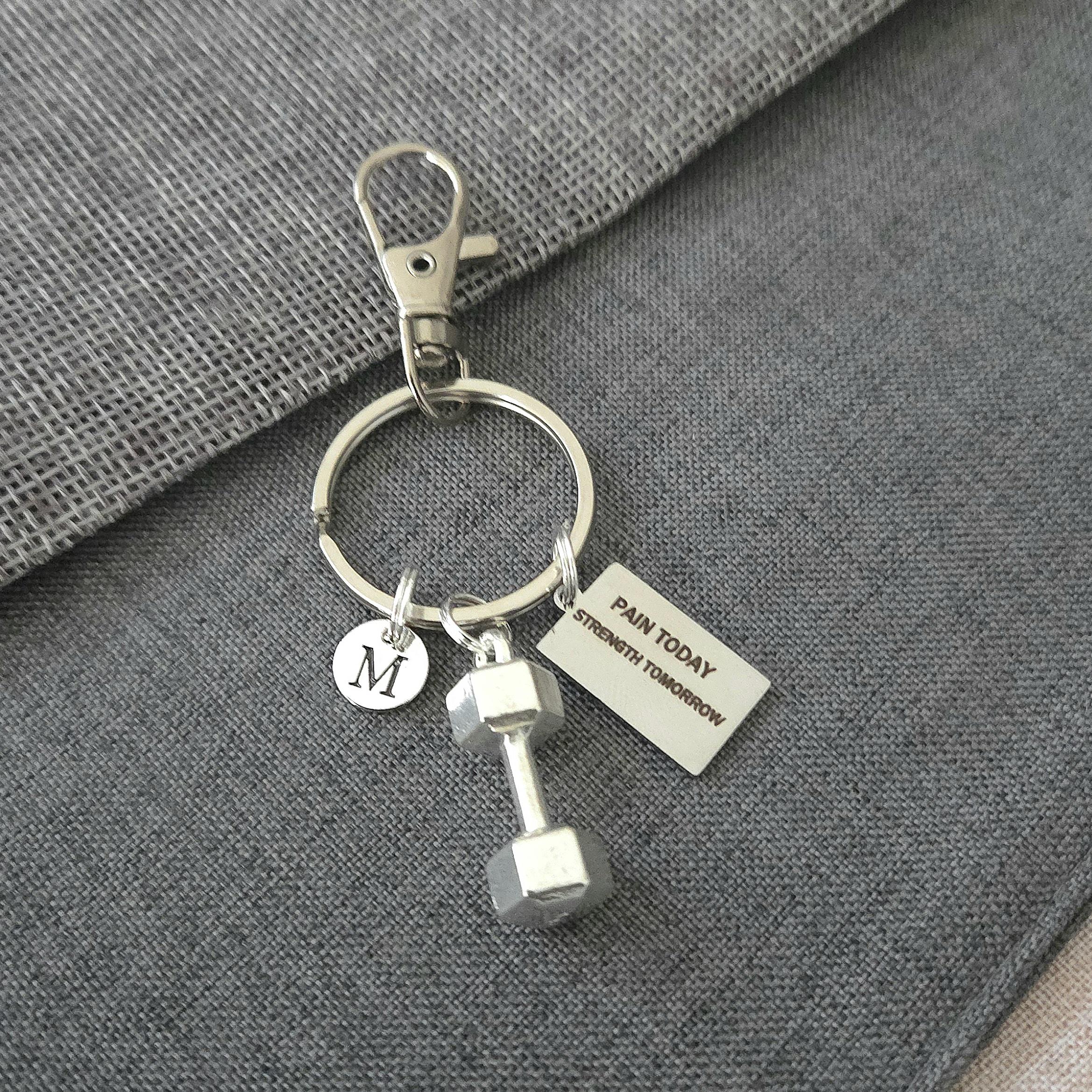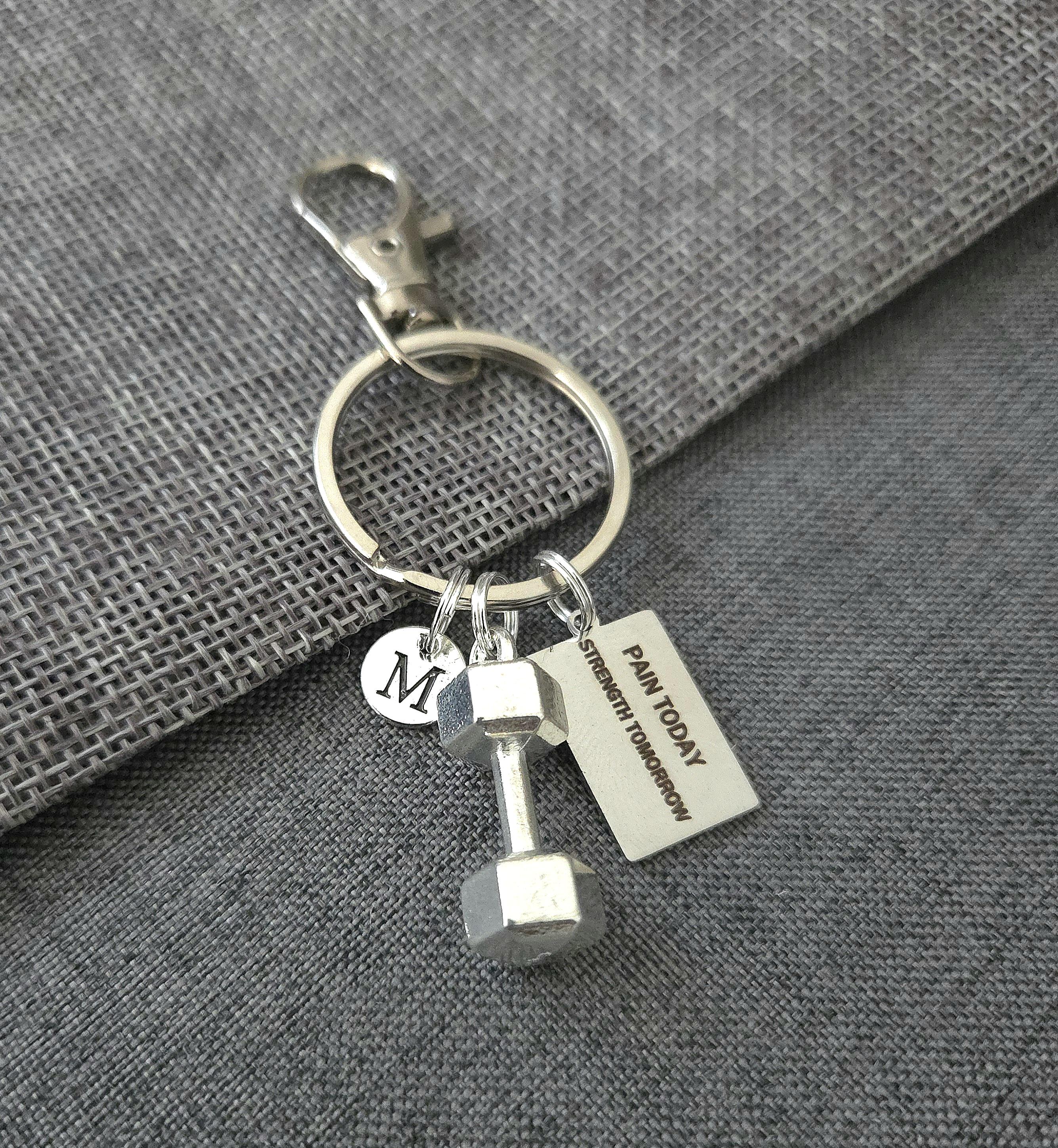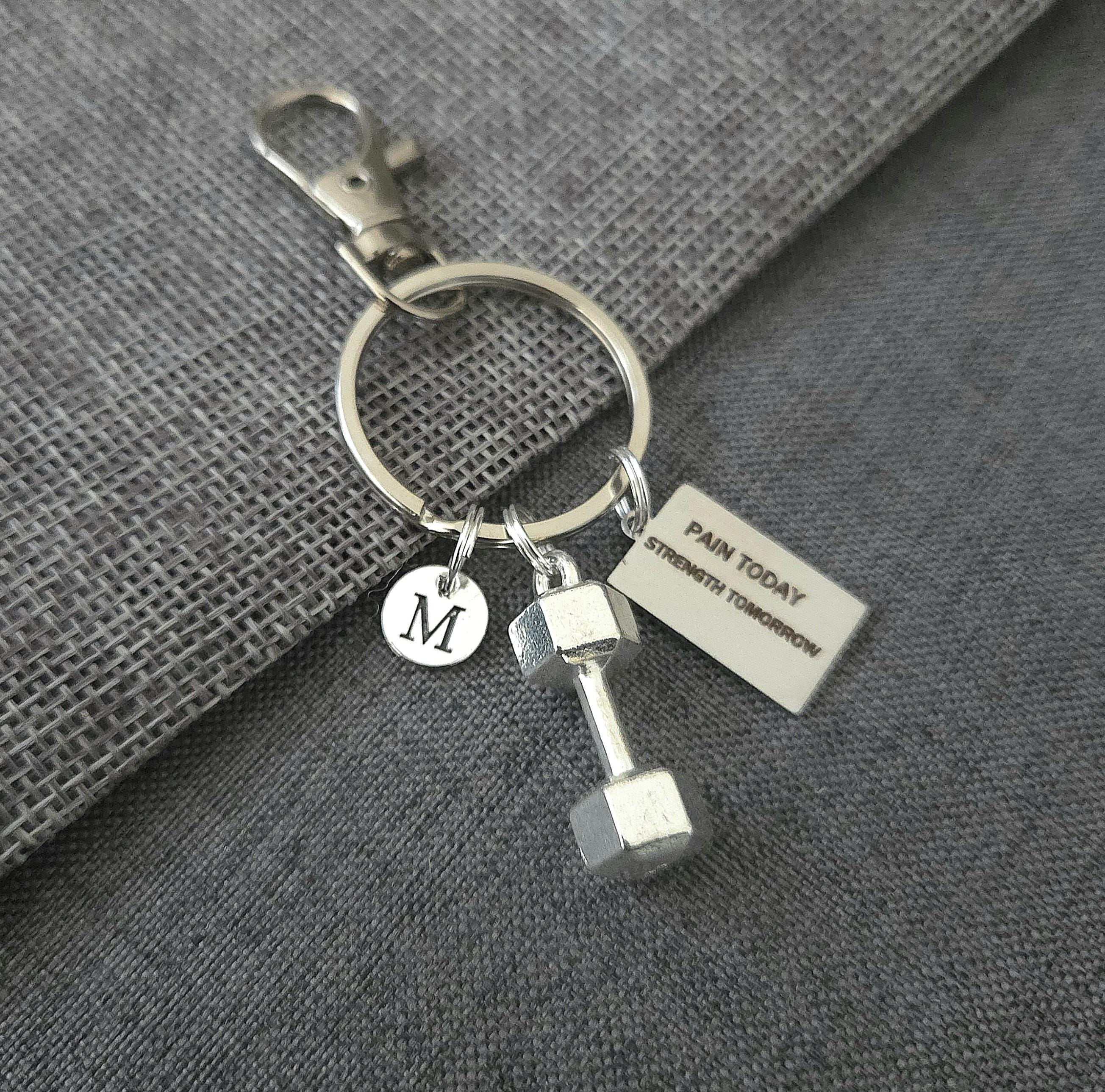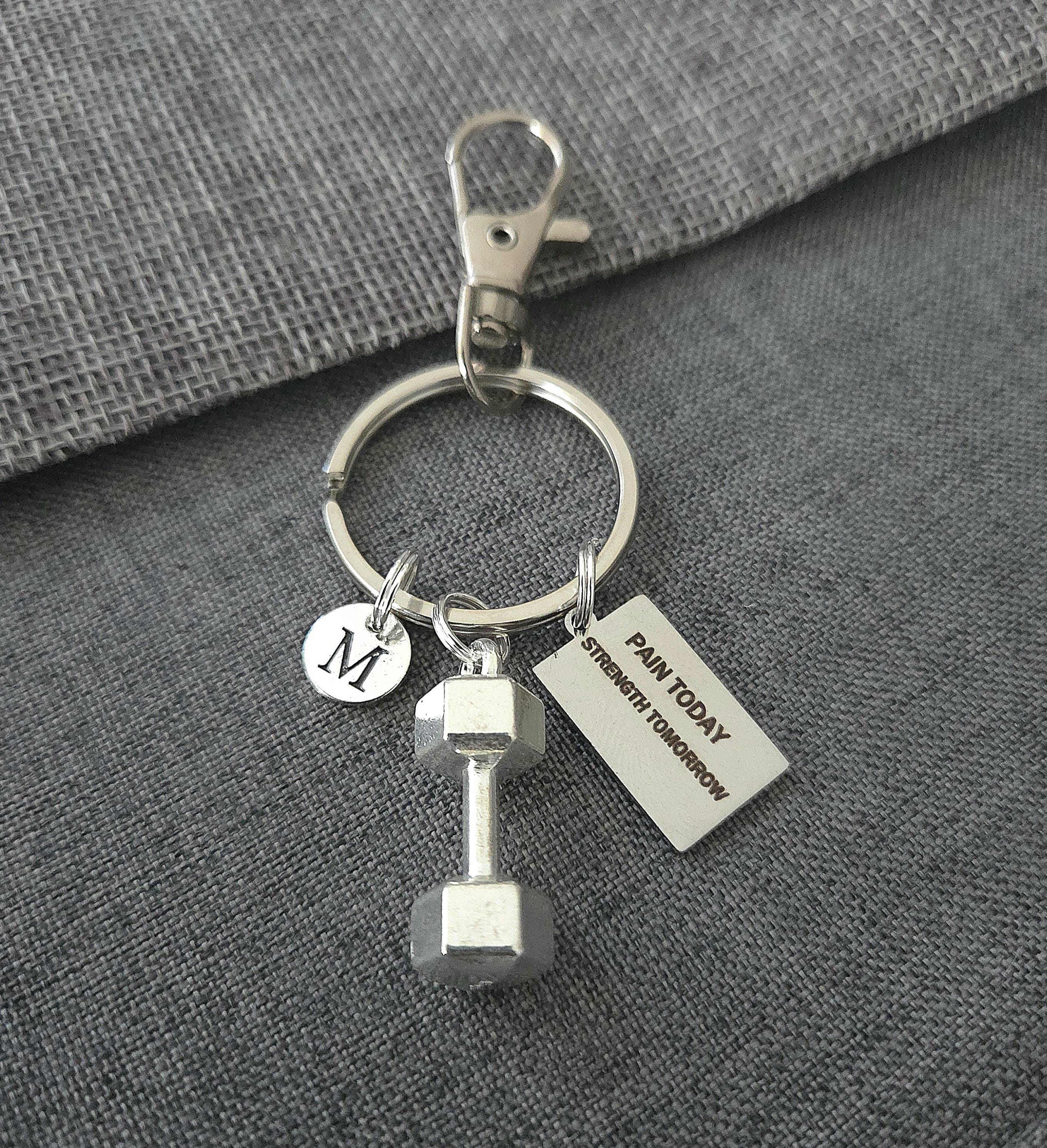 Boyfriend birthday gift, boyfriend gift long distance,gym gifts for her, gym keychain, gym key ring, dumbbell charm, pain today strength tomorrow