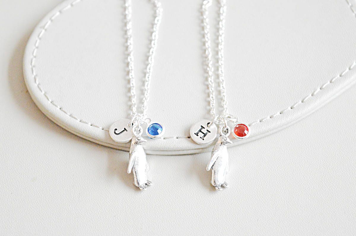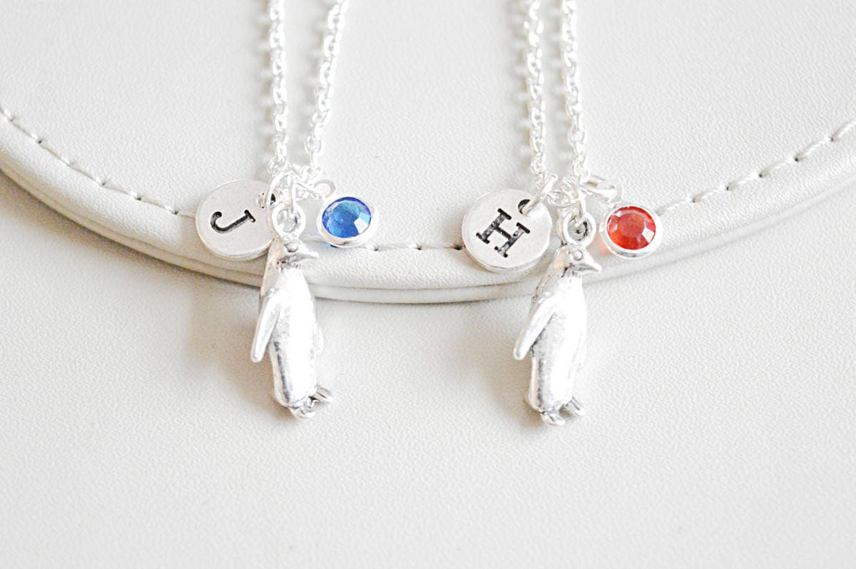 2 BFF necklace, Best friend gift set, Penguin Necklace, Birthday gift for her, best friend silver jewelry, personalised necklace,Necklace set