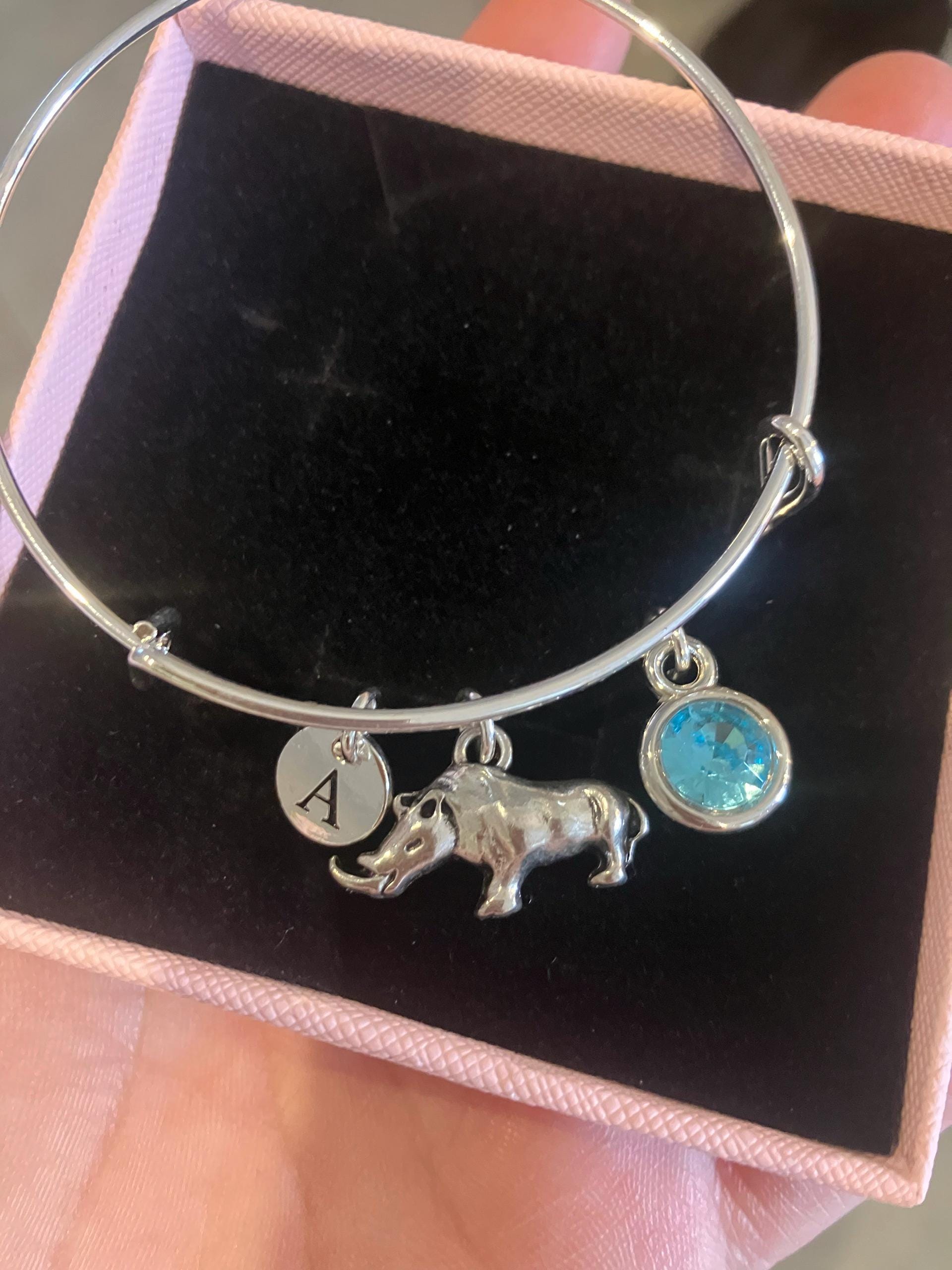 Rhino Bracelet, Rhino Gift, Rhino Jewelry, Rhinoceros Gift, Rhinoceros Bracelet, Wild Animal, Safari, Africa, Rhino Charm, Rhinoceros,Animal
